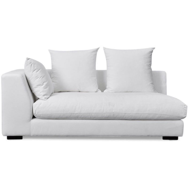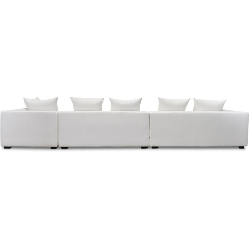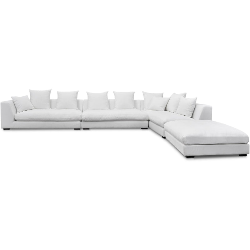Das Sofa "Paolo" präsentiert sich in einer beeindruckenden, reinweißen Farbe, die Reinheit und Eleganz ausstrahlt. Es ist ein großes, modulares Sofa, das Flexibilität in der Anordnung bietet und sich ideal für geräumige, moderne Wohnbereiche eignet.