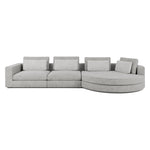 Das Design zeichnet sich durch eine Kombination aus geraden und geschwungenen Linien aus. Die Hauptstruktur des Sofas ist geradlinig mit deutlich erkennbaren, rechteckigen Formen, die durch das runde, einladende Chaiselongue-Element am Ende kontrastiert werden. Diese Mischung aus Formen bietet nicht nur visuelles Interesse, sondern auch vielseitige Sitzmöglichkeiten, die in verschiedenen sozialen Kontexten nützlich sind.