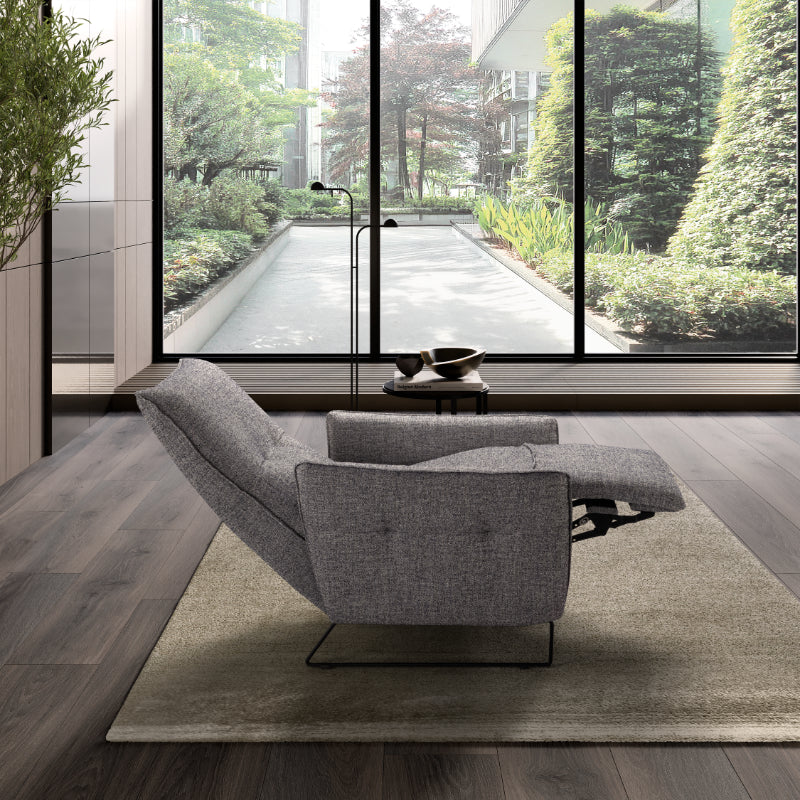 Der Sessel Quinto verbindet modernen Stil mit höchstem Sitzkomfort. Sein hochwertiger, grauer Strukturstoff sorgt für eine zeitlose Optik und passt perfekt in jedes Wohnzimmer. Die extra weiche Polsterung im Sitz- und Rückenbereich lädt zum Entspannen ein, während die leicht abgewinkelten Armlehnen für zusätzlichen Komfort sorgen. Das filigrane schwarze Metallgestell verleiht dem Sessel Leichtigkeit und Stabilität zugleich. Mit seinem minimalistischen Design und der hochwertigen Verarbeitung ist der Sessel Quinto eine ideale Ergänzung für jedes moderne Zuhause – perfekt für gemütliche Stunden und stilvolle Wohnräume.