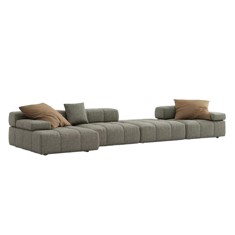 Das Sofa Calix verkörpert luxuriösen Komfort in einem einzigartigen, modularen Design. Die weiche, gepolsterte Oberfläche mit den markanten, rechteckigen Steppnähten verleiht dem Sofa eine strukturierte und gleichzeitig gemütliche Optik. Die großzügigen Sitzflächen bieten viel Platz zum Entspannen und laden zu langen Stunden der Erholung ein. Dank des modularen Aufbaus lässt sich das Sofa flexibel an verschiedene Raumkonzepte anpassen. Der helle Stoffbezug sorgt für eine moderne, aber zugleich warme Atmosphäre, die in unterschiedlichste Einrichtungsstile integriert werden kann. Calix ist die perfekte Wahl für alle, die hohen Komfort mit einem modernen, strukturierten Design verbinden möchten.