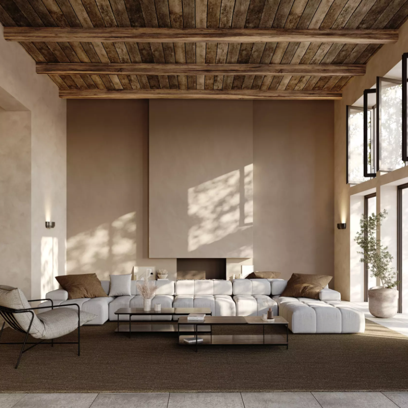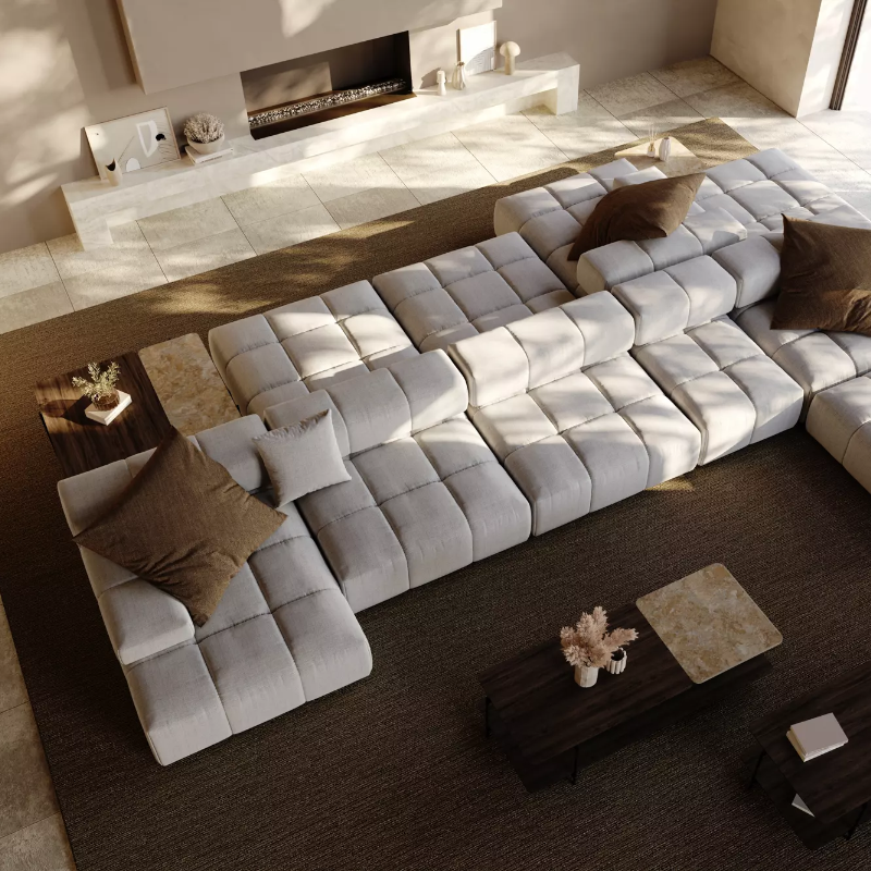 Stilart: modern, modular, mit einem Hauch von Luxus und Struktur.