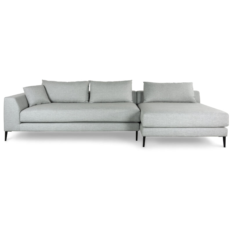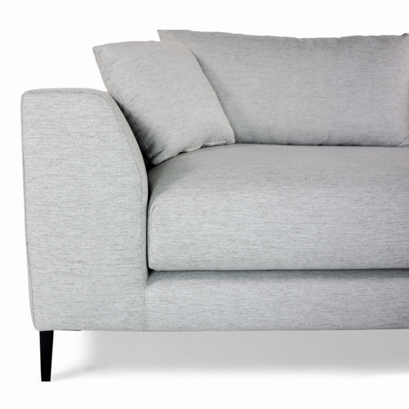 Die Struktur des Sofas ist geradlinig und klar definiert, mit einer großzügigen Sitzfläche, die durch das angeschlossene Chaiselongue-Element erweitert wird. Dies bietet zusätzlichen Raum für Entspannung und macht "Linus" zu einem idealen Mittelpunkt für Wohn- oder Lounge-Bereiche.